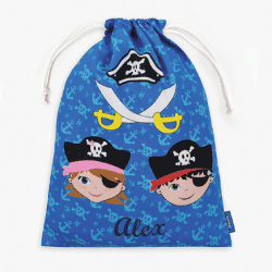 Si als teus fills els agraden els contes de pirates, aquesta és la teva bossa per a muda de Stikets. T'encantaran els seus simpàtics pirates sobre un estampat blau marí de calaveres. A joc amb les etiquetes dels teus Packs temàtics Stikets preferits!