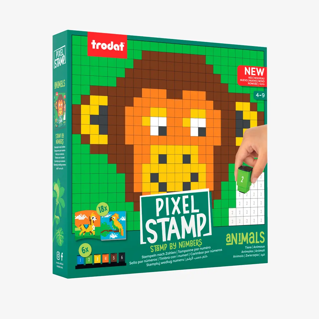 Trodat Pixel Stamp Animals es una innovadora manualidad que combina creatividad y diversión con el arte de pixeles. Incluye 6 sellos de colores diferentes y un cuadernillo con 18 plantillas codificadas por colores.